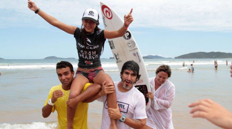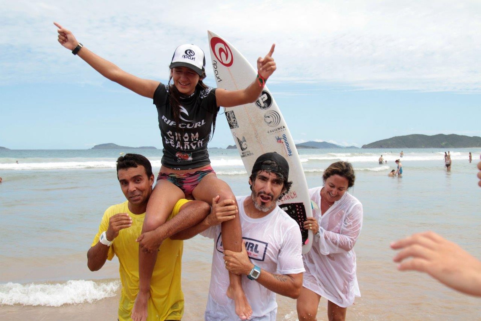 A família Medina comemorou mais um título nesse domingo (25). Desta vez, quem foi carregada nos ombros de Charles Saldanha após a conquista foi a caçula da família, Sophia Medina, que faturou o título geral do Grom Search 2018, na categoria sub-16 feminina, na praia do Geribá, em Búzios-RJ. O feito emocionou o irmão mais velho Gabriel Medina, que está na Austrália se preparando para primeira etapa do CT.