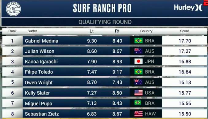 Neste domingo, as pontuações serão zeradas e cada atleta poderá surfar mais três esquerdas e três direitas. Novamente, as duas melhores notas – uma de frontside e outra de backside – contam para o somatório final. A próxima chamada para a grande final acontece neste domingo às 13:30 horas (de Brasília).