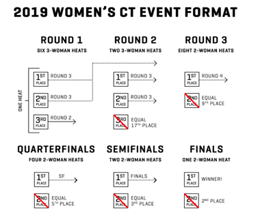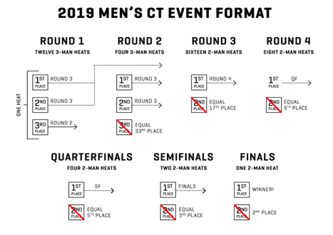 O formato das baterias nas etapas do Championship Tour terá novidades em 2019. O número total de baterias será o mesmo (36), mas o intuito da Liga é deixar as disputas mais dinâmicas.