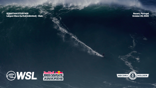 O alemão Sebastian Steudtner terá o seu nome escrito no GUINNESS WORLD RECORDS™ pela maior onda surfada por um homem. Como parte do Red Bull Big Wave Awards, a WSL analisou, mediu e verificou oficialmente, a onda vencedora do Big Wave Award 2021 de Sebastian Steudtner na Praia do Norte, em Nazaré, Portugal, surfada no dia 29 de outubro de 2020, com uma altura de 86 pés (26,21 metros) da base até a crista da onda.